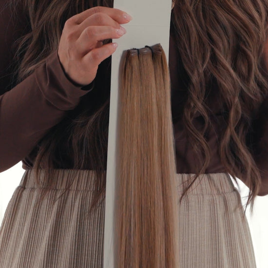 *Twill best compares to Neutral Bronde from the Hand Tied Collection and Walnut Swirl from the Euro Microweft Collection.